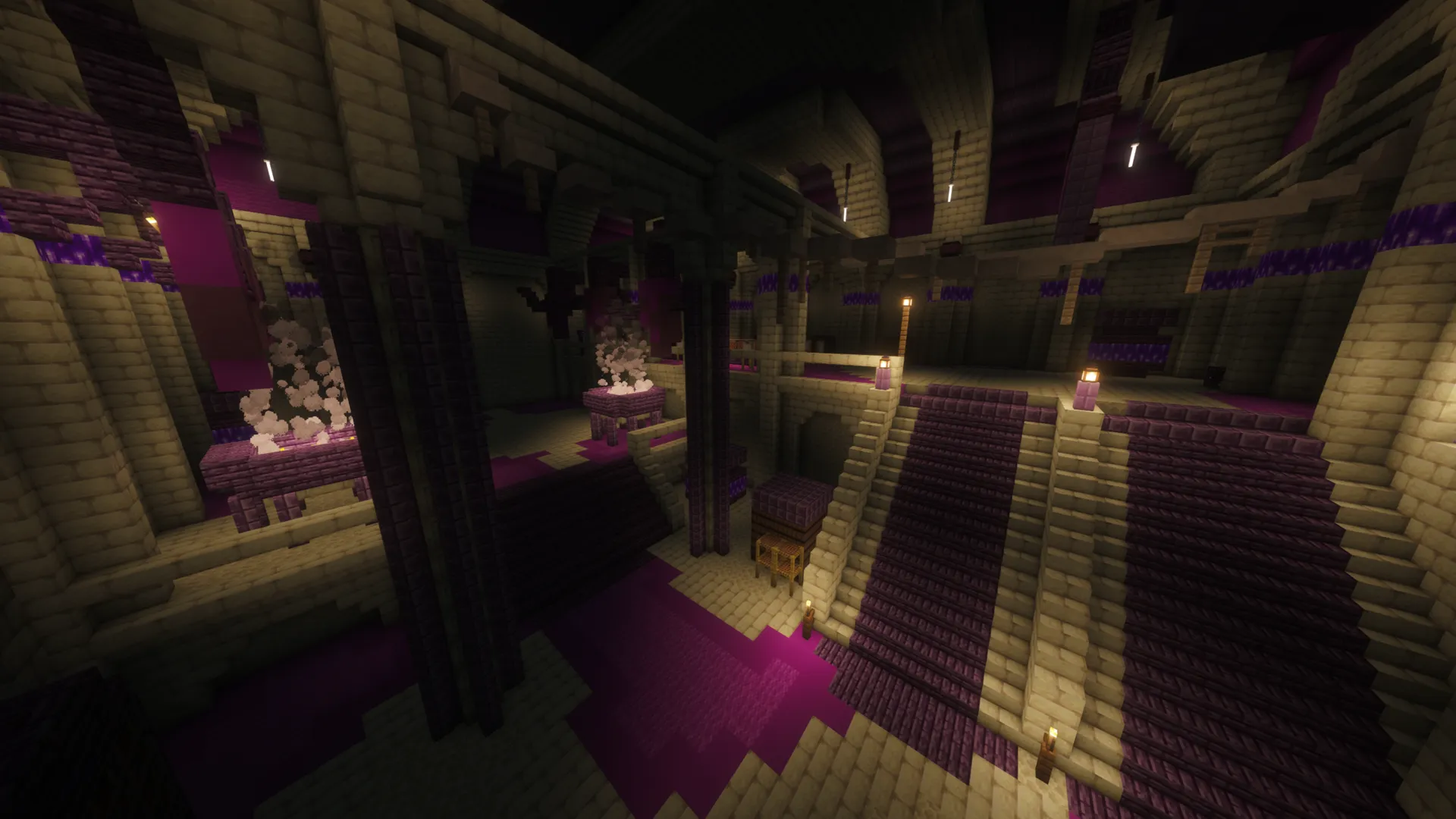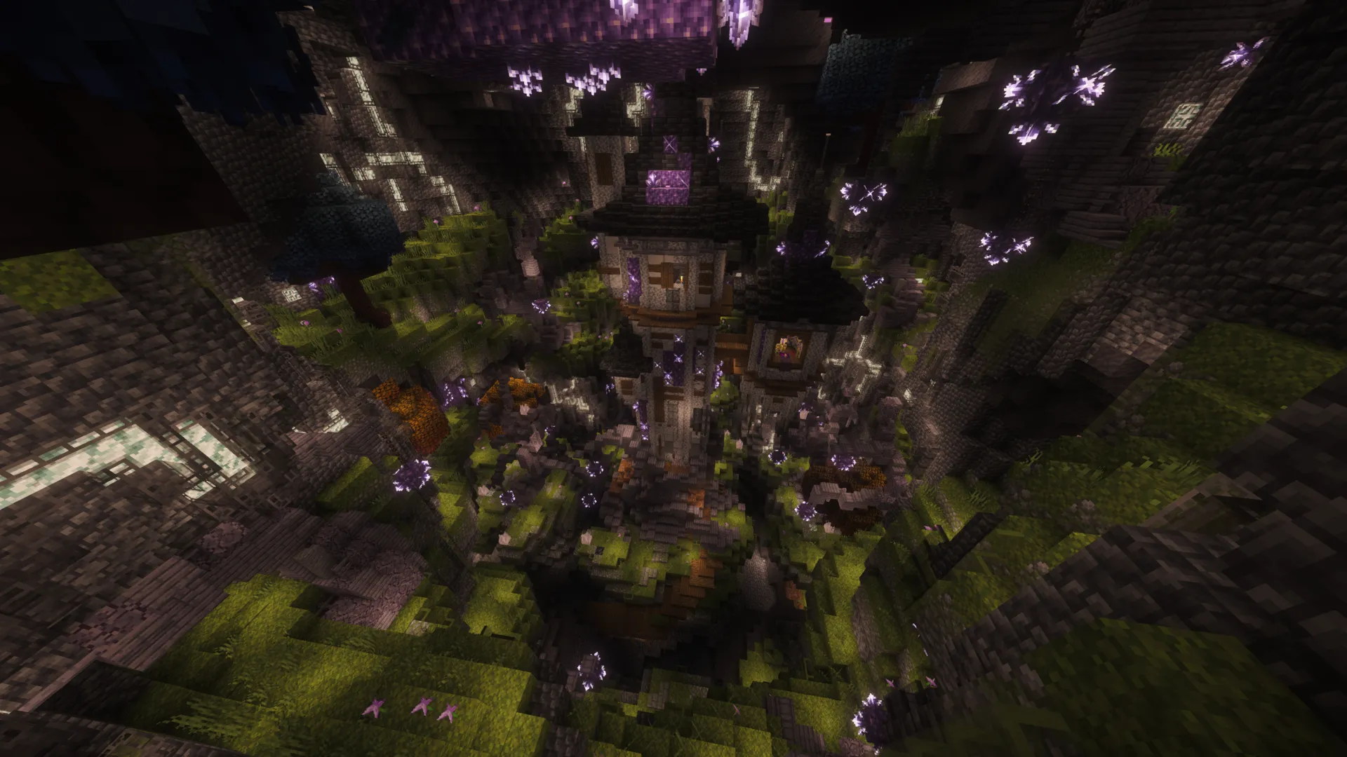 Every journey begins in the Garden of Stone, a vast underground glade lit by amethyst light. From here, you'll choose one of five unique starting islands, from the classic stone box survival to thriving biomes alive with mystery.